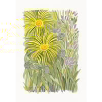 A multi layered screen print inspired by Inula flowers in the garden